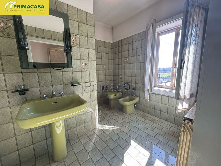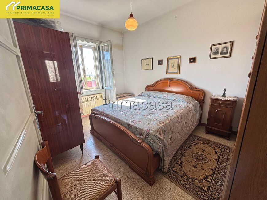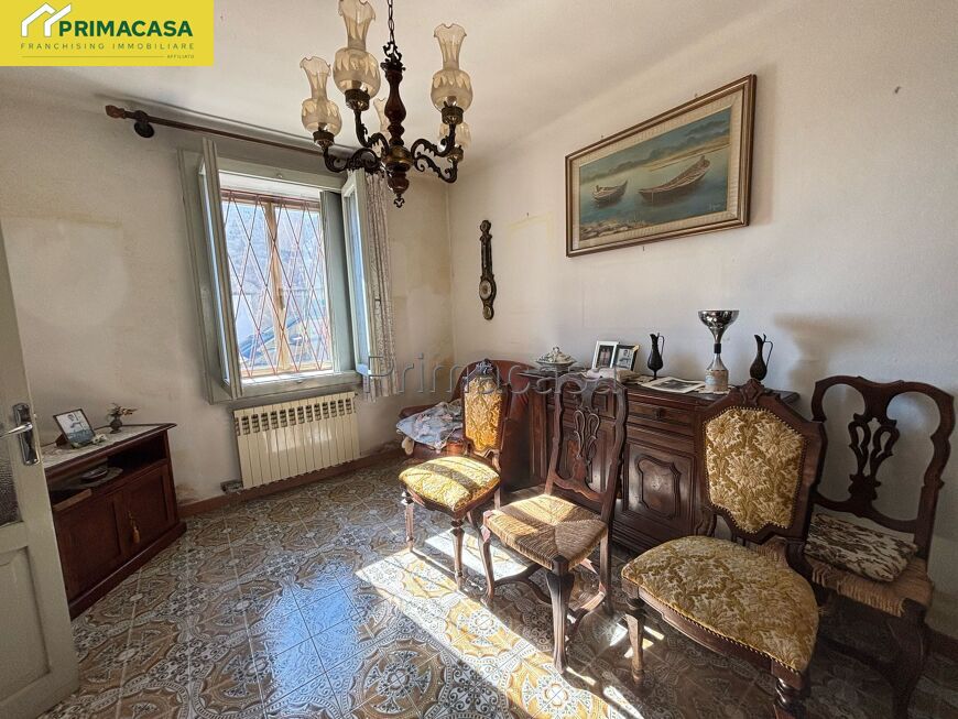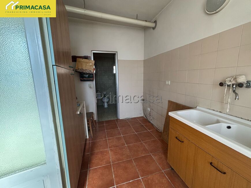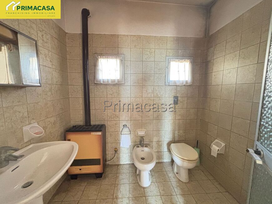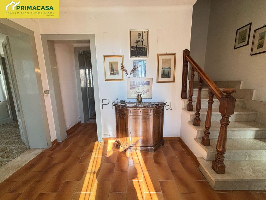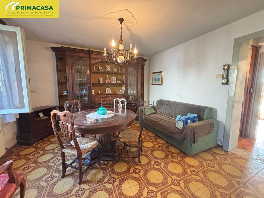 Abitazione d'angolo di ampia metratura, disposta su due piani, con corte esclusiva, deposito e garage con tettoia e sovrastante ripostiglio in corpo separato. Posizione tranquilla comoda al centro.