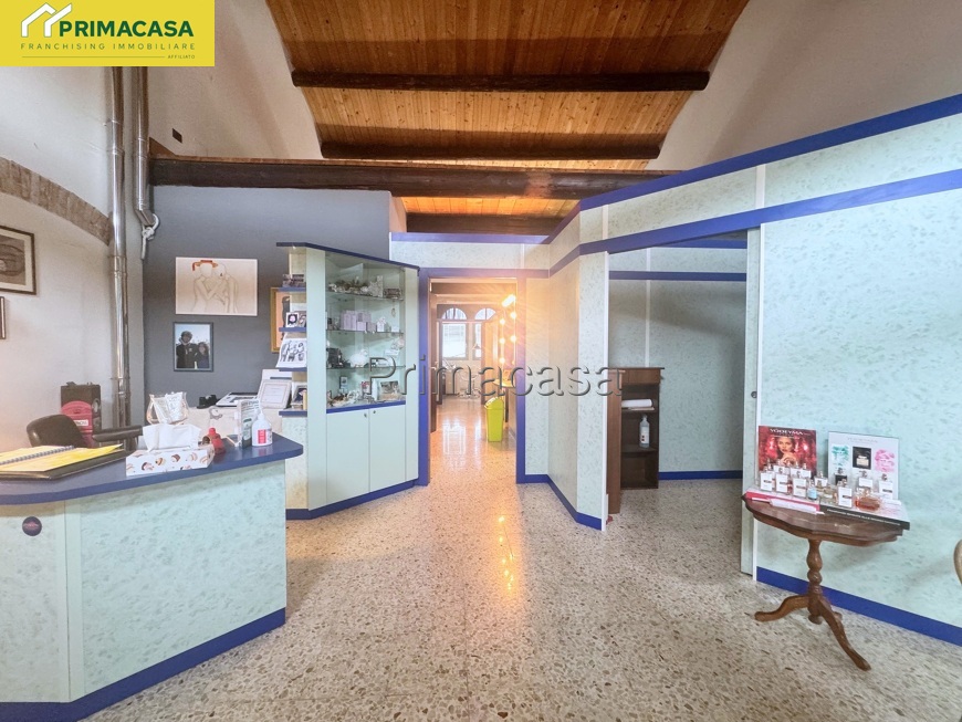 In pieno centro di Cerea, a fianco la Chiesa principale con comodo parcheggio gratuito, pubblico frontale, proponiamo negozi su 2 livelli, ristrutturati con grande cura e scelta dei materiali, attualmente adibiti a studio di podologia ed a centro estetico.
