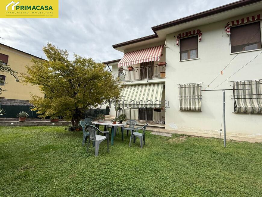 In contesto di sole 3 unità abitative, appartamento al paino terra con giardino di proprietà esclusiva di ingresso, luminoso soggiorno con affaccio sul giardino, cucina abitabile, spazioso disimpegno, bagno finestrato con vasca e box doccia adattabile, camera singola doppia e camera matrimoniale. Al piano semi-interrato spazioso garage con basculante e ripostiglio/lavanderia.