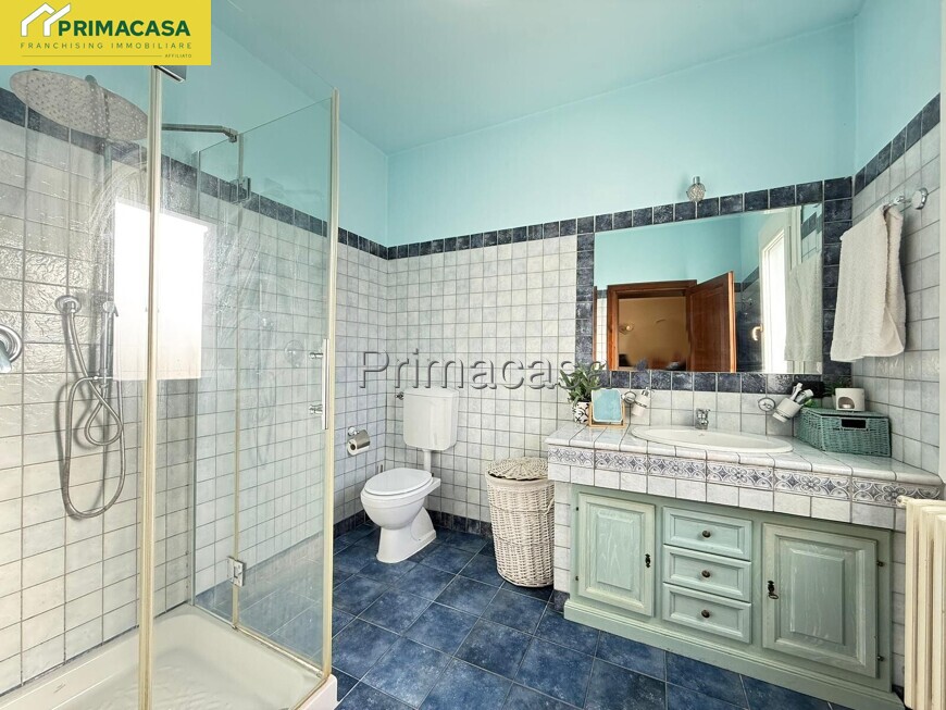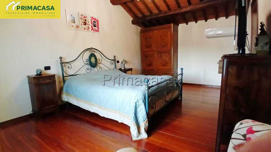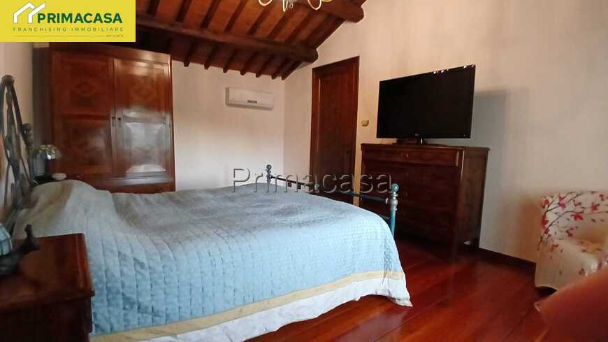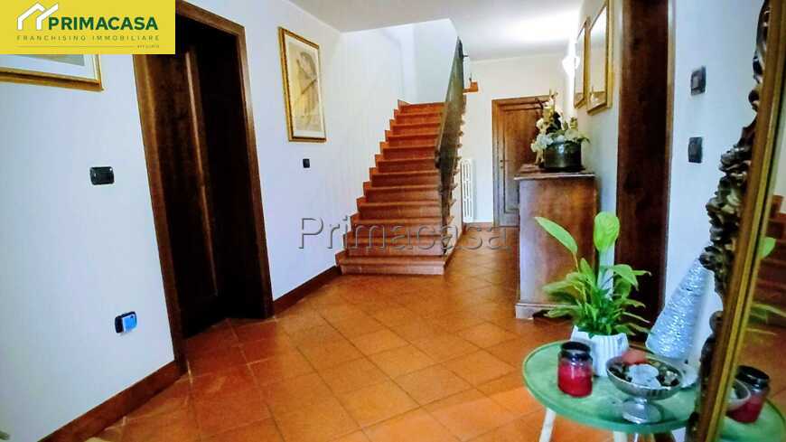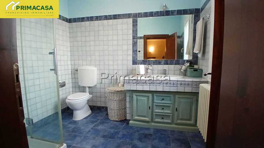 Piano primo: tre ampie camere matrimoniali, uno studio e un secondo bagno finestrato con vasca. Completa la proprietà annesso esterno di 62 mq ad uso taverna con deposito auto, giardino privato di 4.000 mq.