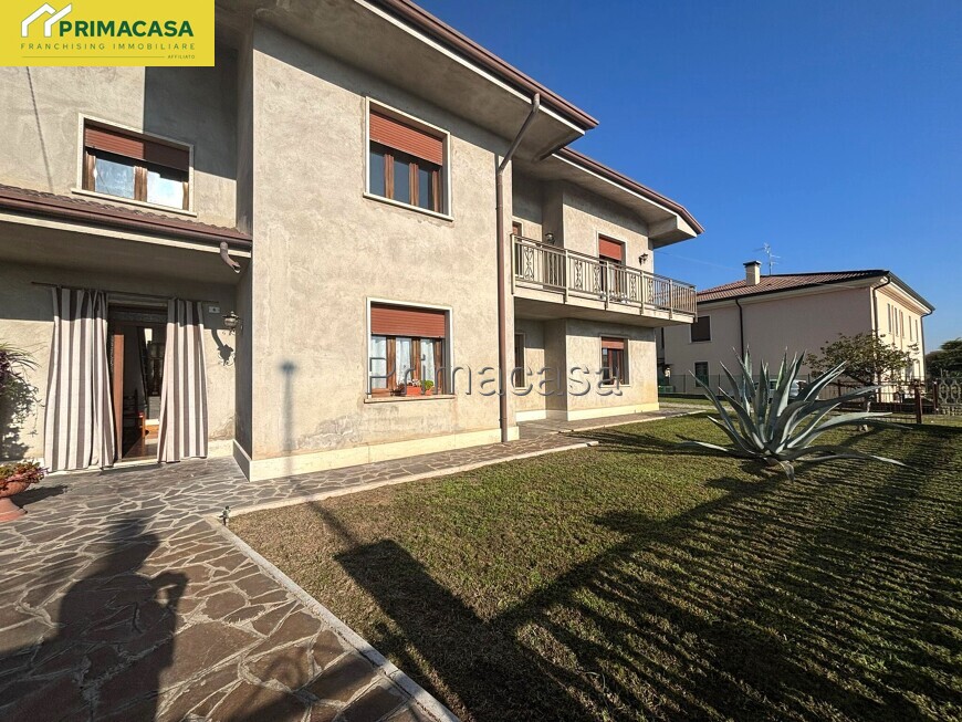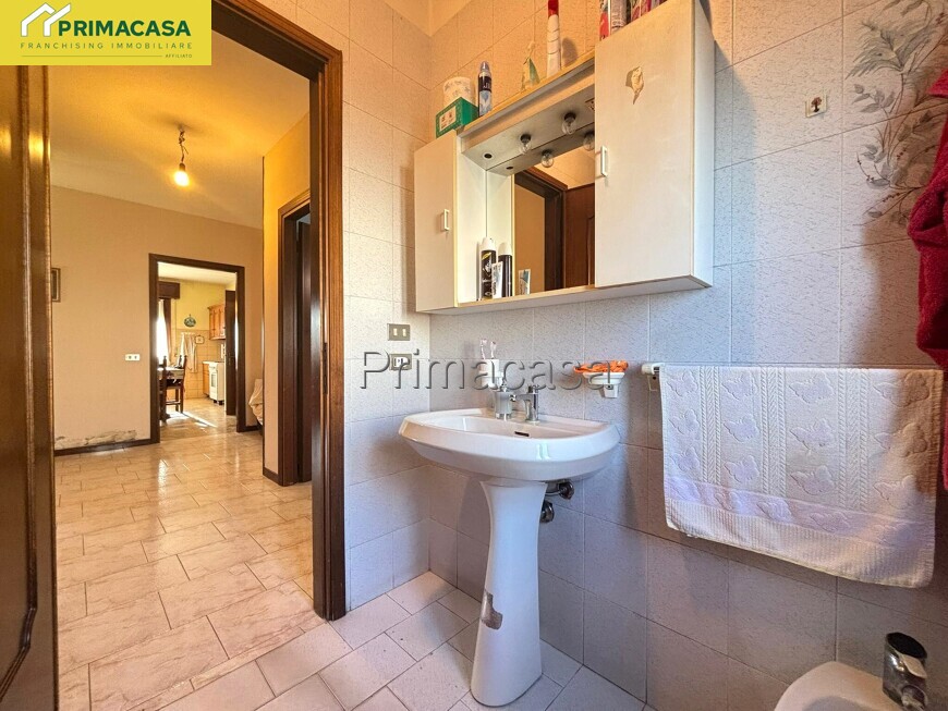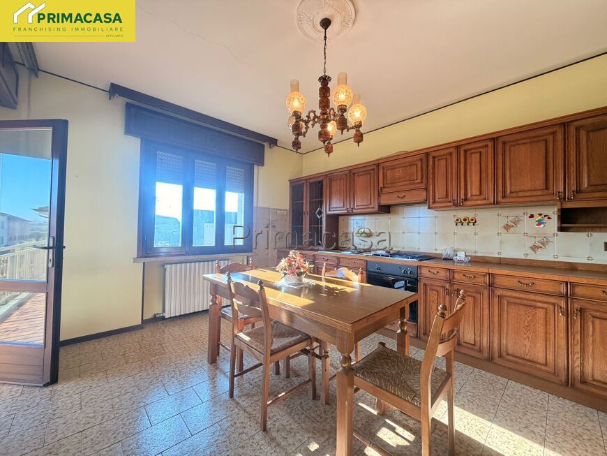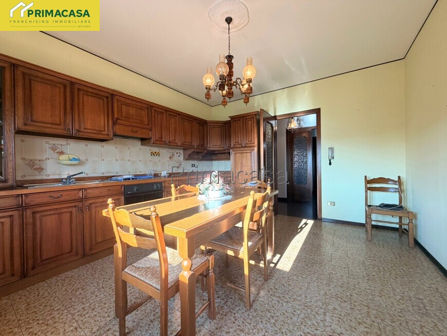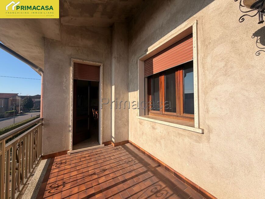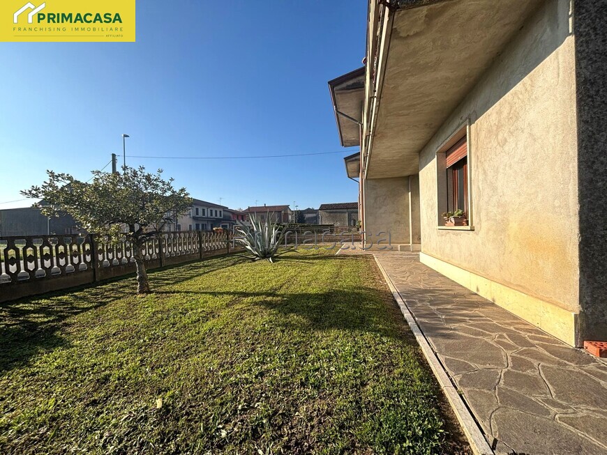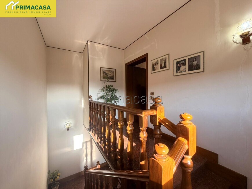BOSCHI SANT'ANNA - In vicinanza ai principali servizi, e a pochissimi passi dalla Piazza, proponiamo ampia porzione di bifamiliare di 227 mq disposta su due livelli fuori terra. L'immobile si sviluppa principalmente al piano primo con la zona giorno composta da cucina abitabile e signorile soggiorno/sala da pranzo con suggestivo balcone; le tre voluminose camere da letto con terrazzino, bagno finestrato con vasca e comodo ripostiglio servono la zona notte. Da scala interna è possibile accedere al piano terra dove troviamo la taverna con camino, generoso disimpegno da poter adibire a stanza da letto/studio e comodo wc finestrato. Il garage e la centrale termica/locale lavanderia concludono la parte abitativa. A concludere, il capannone di 190 mq edificato nei primi Anni 2000 e la corte di proprietà.