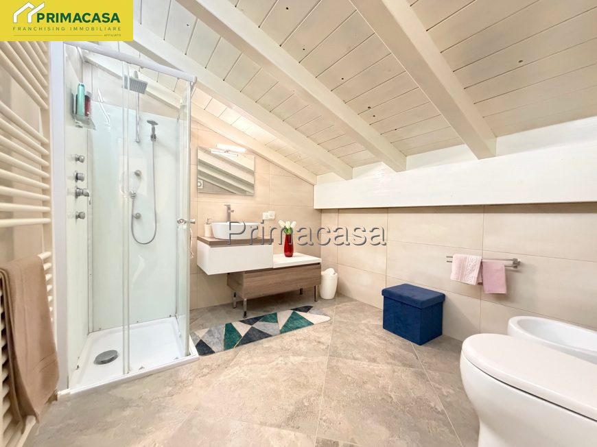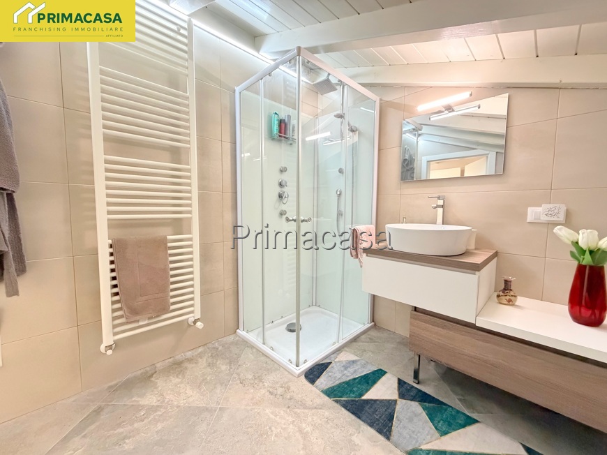 Grande zona giorno che da su giardino privato dotato di caminetto, utilissimo spazio per godersi cene in compagnia o lasciar i propri figli a divertirsi all'esterno, 2 bagni, ripostiglio con lavanderia e tre stanze più comodo sottotetto ad uso ripostiglio, garage singolo.