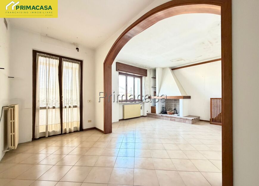 Al piano primo si disloca un appartamento quadrilocale di 130 mq composto da: ampio ingresso, spaziosa cucina abitabile, suggestivo salotto balconato e accessoriato con caminetto a legna, la zona notte comprende due comode camere matrimoniali, bagno servito da box doccia e vasca e il locale lavanderia/ripostiglio.
