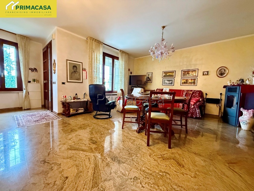 L'abitazione è in eccellenti condizioni manutentive con pavimenti in marmo, gres porcellanato e parquet, serramenti in legno con vetro e termopan, zanzariere e scuretti in legno.