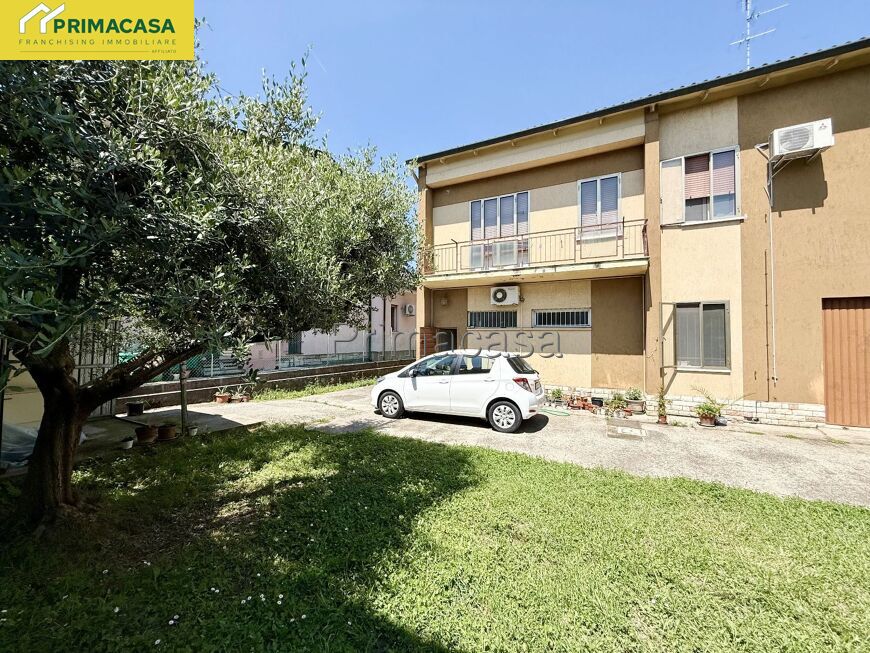 In pieno centro, comodo a tutti i servizi del paese, proponiamo in vendita un ampio appartamento in bifamiliare posto al piano primo, composto internamente da luminosa zona giorno, cucina abitabile, due camere da letto matrimoniale, bagno con doccia finestrato e lavanderia. Possibilità di ricavare la terza camera da letto. Inclusi nella proprietà si trovano un giardino e un garage privato.