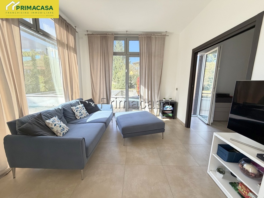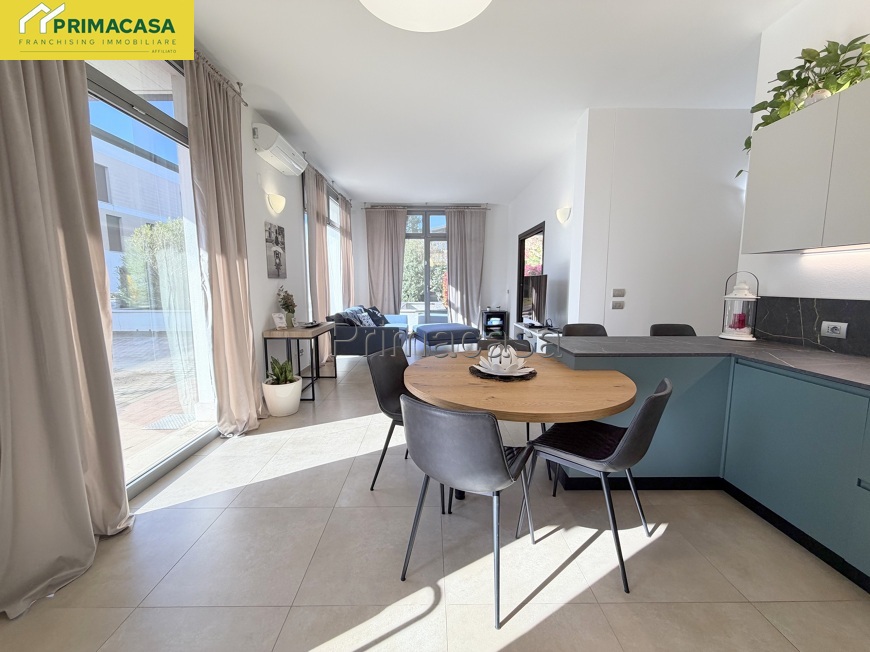 In pieno centro, meraviglioso e luminossimo bilocale al piano terra in riservato e referenziato condominio, con ampi spazi verdi comuni. Le grandi vetrate danno un senso di luce e spazio inimitabile. Appena riattato e compreso della mobilia principale. Utilissima la cantina di generose dimensioni ed il garage di 30 mq.