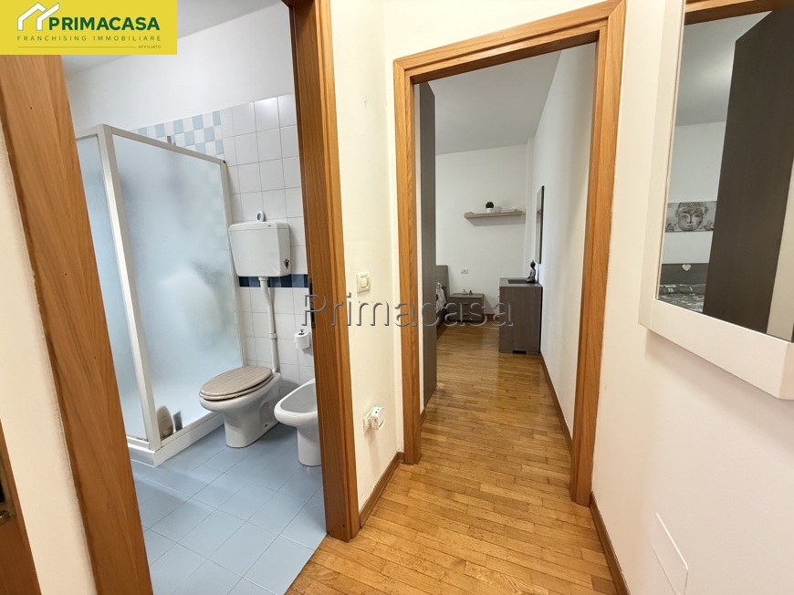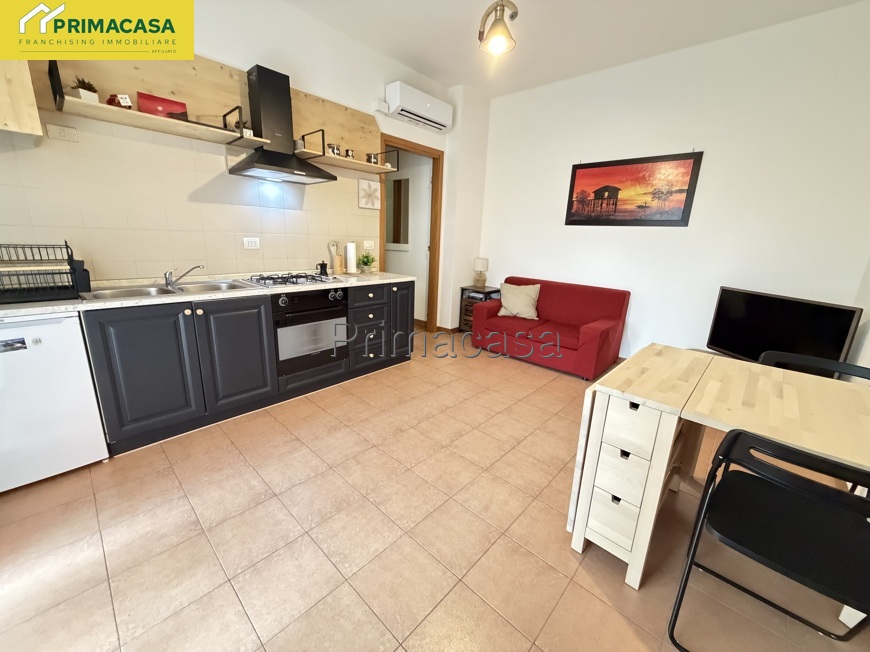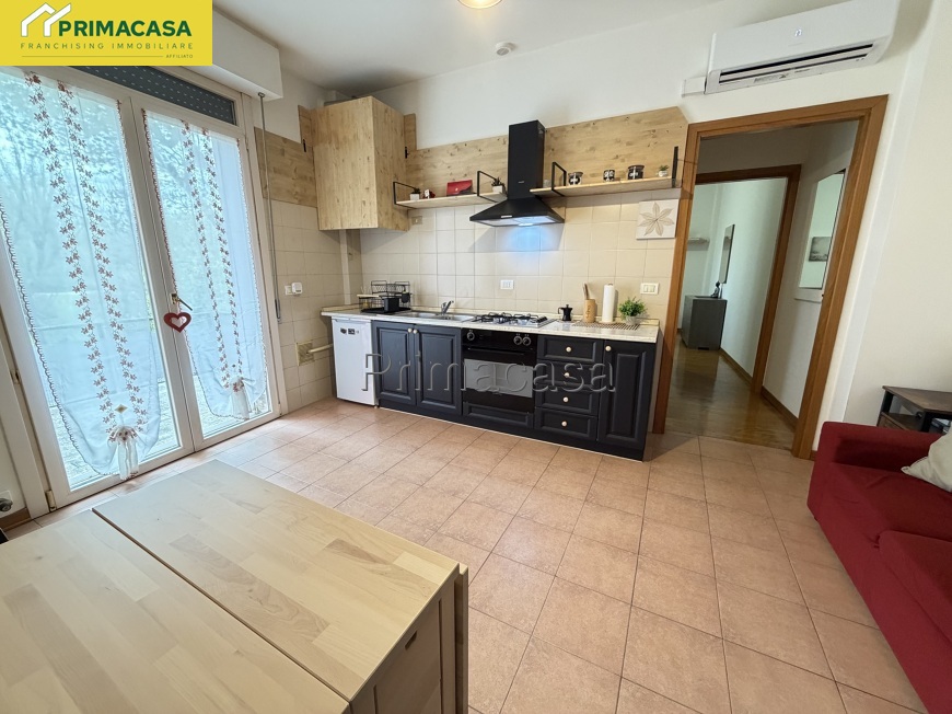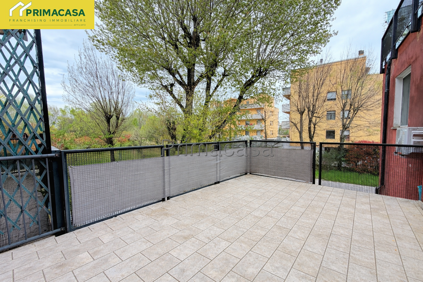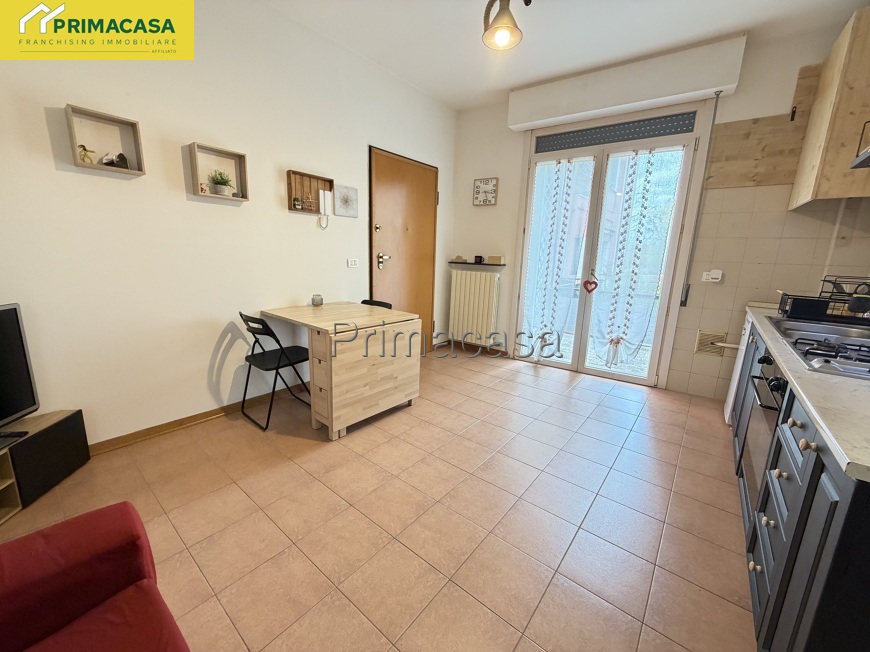In piccolo contento residenziale immerso nel verde, a 400 metri dal centro e tutti i servizi, proponiamo bilocale già arredato con meravigliosa terrazza privata con vista sul parco. Zona giorno con salottino, bagno con lavanderia e camera da letto matrimoniale con pavimento in parquet. Completa la proprietà un grande posto auto coperto e cantina finestrata di utile anche come stireria, zona armadi per cambio stagione, piccola palestra o bricolage.